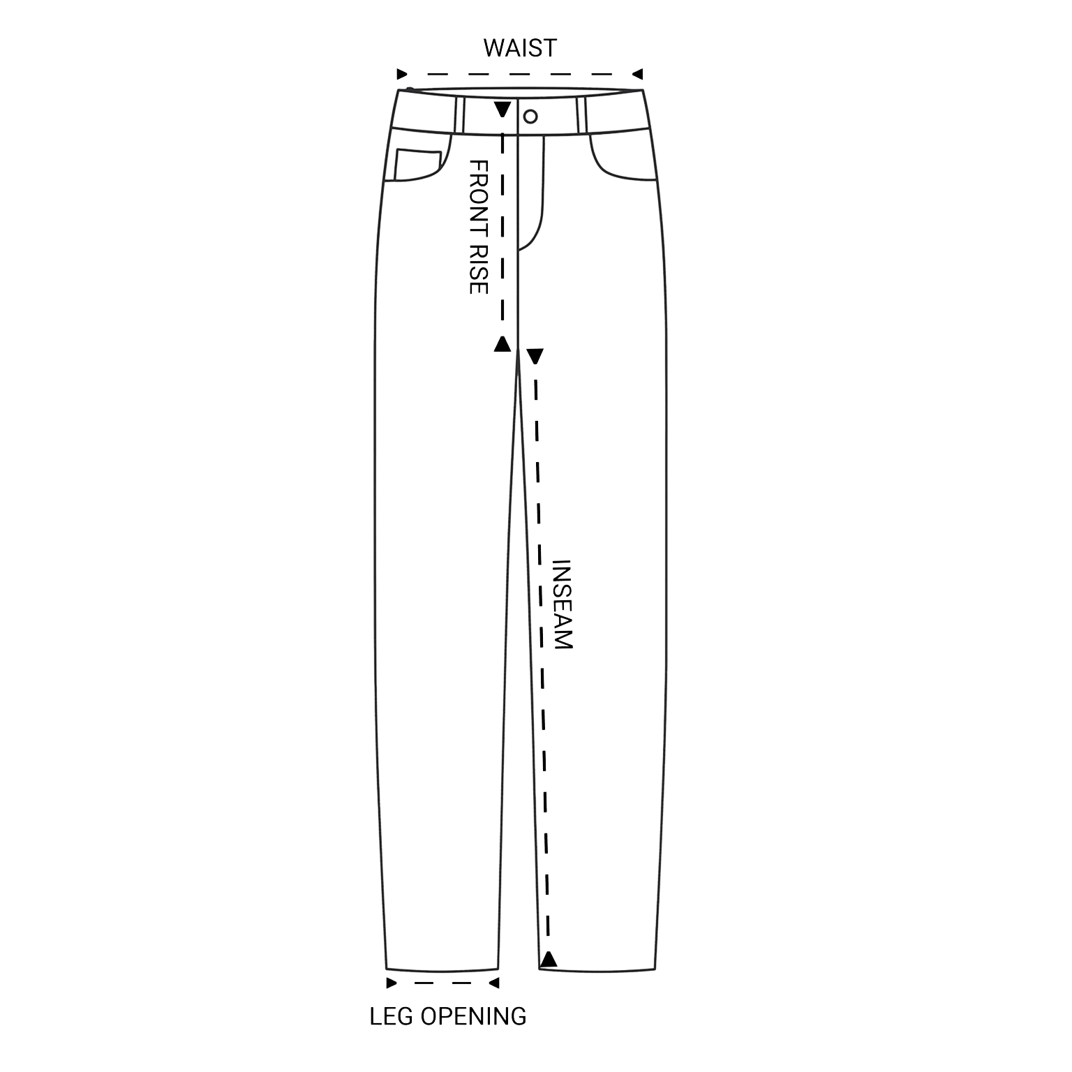 | Size | Waist (in) | Front Rise (in) | Inseam (in) | Leg Opening (in) |